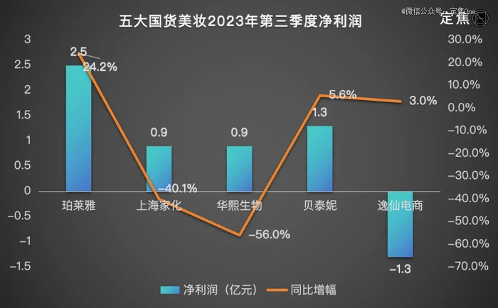 论赚钱能力,五家国货美妆中,*钱的是珀莱雅,其次是贝泰妮、华熙生物、上海家化,逸仙电商仍在亏损。