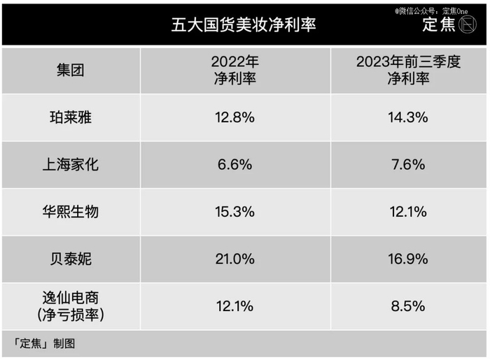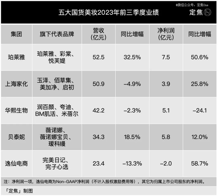 按照今年前三季度的盈利能力,五家国货美妆可以分成三个梯队。