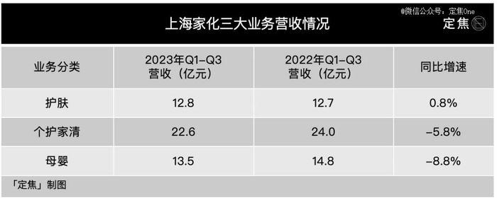 今年以来,虽然上海家化的护肤线业绩重回增长,但另外两个板块还需时间恢复,因此,集团整体的营收表现有所下滑。