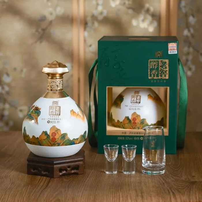 搭配墨绿色礼盒以及镂空设计,入眼就可看见坛身的河清海晏,大气沉稳。