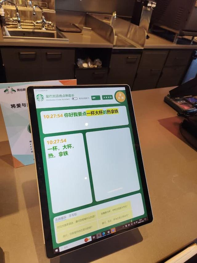 记者看到,为了实现伙伴(工作人员)和顾客的无障碍交流,门店配备了全新的点单系统,包括用于交流的手写板、手持菜单牌、点单双面显示屏等。同时吧台的布局也经过调整,例如调低食品柜的高度、贴心的下沉式凹槽设计等,多维度地帮助伙伴增进与顾客的沟通。此外,手语门店特有的震动计时器(一般门店的计时器仅有声音提示),以震动的方式贴心提示“天使伙伴”(听障伙伴)有条不紊地进行门店运营的各项工作。“天使伙伴”们则身着绣有“STARBUCKS”星巴克手语手势的定制围裙,为顾客递送饮品时,会用手语说“谢谢”,传递着温暖与爱。