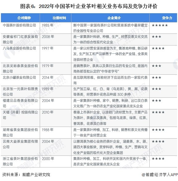 中国茶叶行业企业布局及竞争力评价