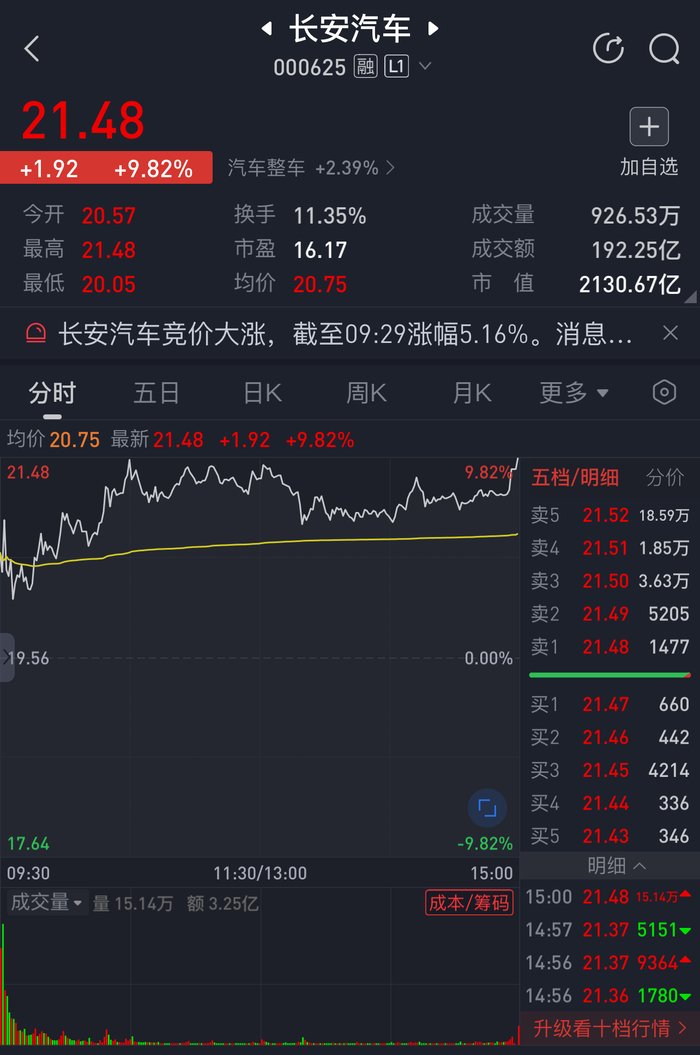 长安汽车再逼涨停,192亿成交量创历史天量!天量天价后走势会如何?