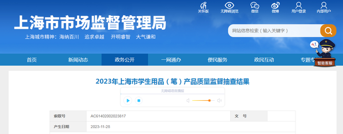 2023年上海市学生用品(笔)产品质量监督抽查结果