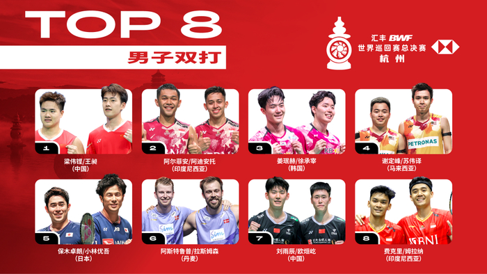 12月11日举行的赛事欢迎晚宴期间,将举行球迷最为关心的世界羽联各项年度最佳的颁奖典礼和总决赛抽签仪式,5个项目63名参赛选手的对阵情况,将在晚宴上产生。