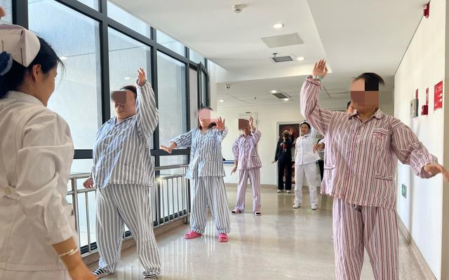 每天下午2点,病区护士长刘京丽及护理团队会带领病房患者进行八段锦、护心操、手指操等运动,用她的话讲,在住院期间,帮助患者养成运动、饮食等健康的生活习惯,可以为“胖友们”在未来成功减重打下坚实基础,减重路上不仅需要医生提供专业的支持和帮助,更需要唤醒“胖友们”健康的生活习惯,让“胖友们”减得更成功、更健康。