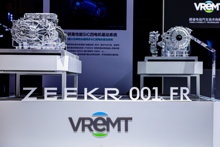 在纯电领域,吉利已建成行业一流的“三电”全栈自研体系,实现自主可控的三电供应生态。例如此次亮相展示的极氪四碳化硅800V系统、V3极充等;其中自研的高性能碳化硅四电机,让极氪001FR最大功率达956kW,最大马力达1300匹,零百加速仅2.02秒,成为全球加速最快的量产纯电汽车。