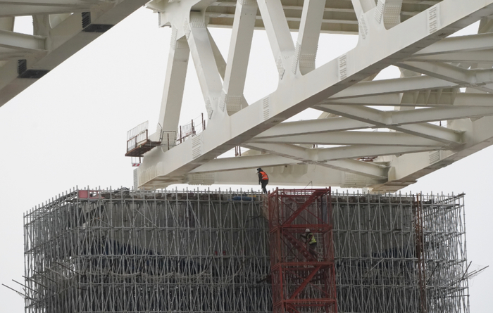 “钢桁梁完成体系转换,主体结构施工完成,下一步将进行为期一个月的支座安装和落梁等附属施工。”项目负责人路祥龙介绍。