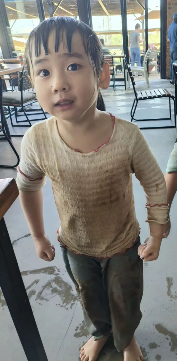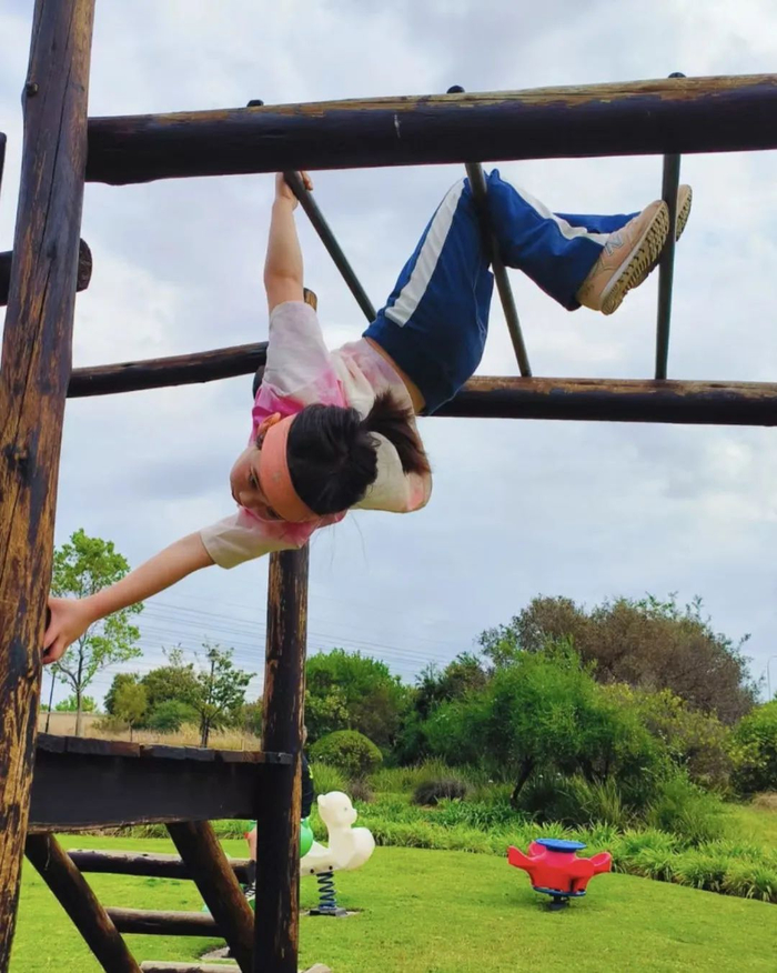 很多大人,包括我家亲戚现在还会觉得,对孩子好就得给她吃好的、穿名牌,但在南非,大家根本不在乎这些东西。前段时间回国,在公园里别的小朋友都穿得很精致,玉米永远是廉价打底裤。看到柱子什么的,她脱了鞋,三两下就爬了上去。