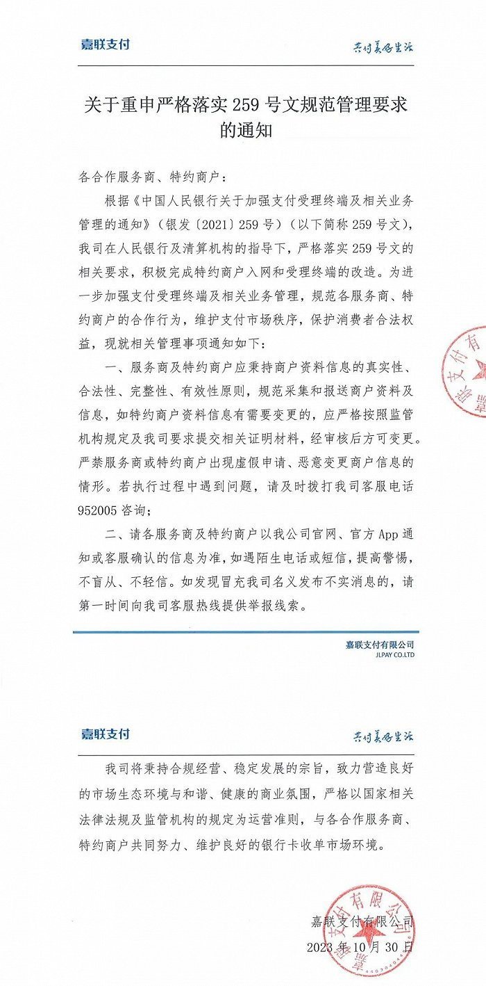 随后今年11月,清算机构再次发文,要求加强收单机构对商户修改名称的审核,增强对于商户名称异常变更的监控,坚决杜绝在商户信息报送环节和交易环节异常变更商户名称的情形。存在问题的,应在2023年11月10日前完成整改。