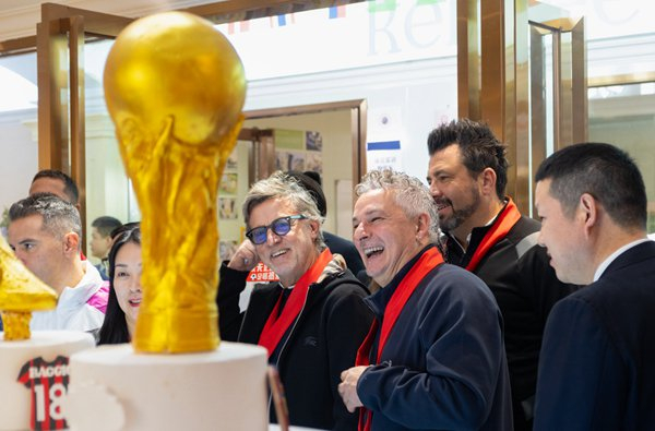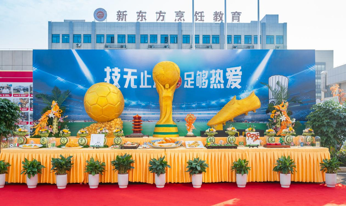 超级球星们在新东方烹饪先后参观了雕刻展台、体验击鼓翻锅、品鉴传统小吃、参观中餐和西点教室并与球迷亲切互动。新东方烹饪的学生们用精湛的雕刻技术还原了”大力神杯”、”欧洲金球奖杯”、”欧洲金靴奖杯”等多个足球奖杯;在击鼓翻锅环节,球星们拿起鼓槌,在一击、一颠、一落之中,感受到了中国烹饪文化与礼乐文化交相呼应的魅力。