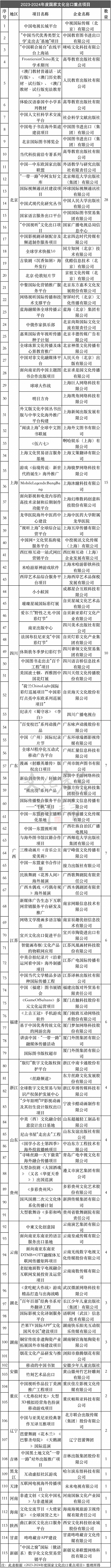 今年是文化出口重点企业评选的第16年(9届)。该评选紧紧围绕“推动中华文化走出”的战略部署,由商务部、中央宣传部、财政部、文化和旅游部、广电总局联合评定出一批具有国际竞争力的外向型文化企业和项目,着力推动对外文化贸易的高质量发展。本届共评选出国家文化出口重点企业367个和重点项目115个。(详见下表)