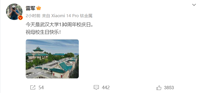 雷军曾不止一次表示,珞珈山是梦想开启的地方,在武汉大学所学到的专业知识和学习能力为他之后的创业打下了良好的基础。