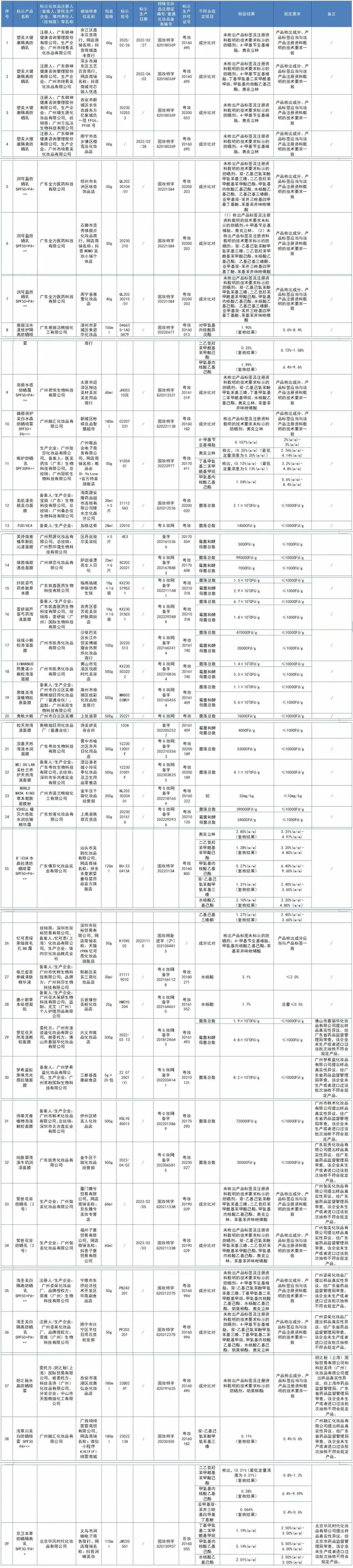 面膜、防晒乳、精华液……又有39批次化妆品不合格!