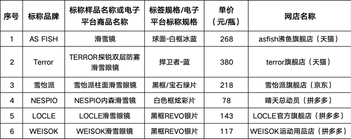 仅7批次滑雪镜标注了新国标,1批次进口产品标注EN(欧洲标准)。