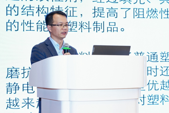 第二位分享的嘉宾是来自中国塑料加工工业协会改性塑料专委会秘书长杨松伟先生,他围绕《科技赋能助力聚烯烃产业高质量发展》展开分析。杨老师在现场除了对聚烯烃改性市场发展、原料的要求、带动情况做了详细介绍和展望,更对发展方向做了展望,他说到塑料加工行业的技术创新未来发展方向,即走向智能化、精密化、功能化、生态化、轻量化。