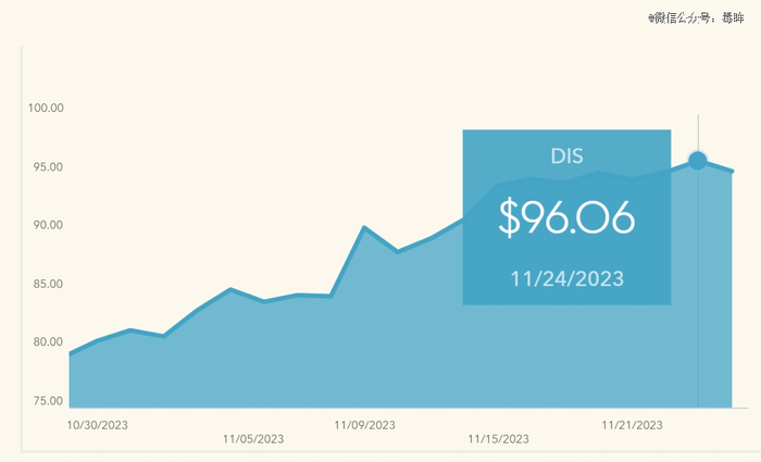 在财报发布后,迪士尼股价于9日跳涨6.9%至每股90.34美元,截至24日收盘时报于96.06美元,相较年初*交易日高近8%。过去三年间迪士尼股价经历“过山车”行情,一度在2021年3月8日触及201.91美元的历史新高,但随后由于市场波动叠加自身因素开始震荡下行,直到上月4日创下79.32美元的近十年*谷,相比市值*期跌去逾六成。在近期一连串利好的驱动下,迪士尼股价正逐渐走出向上的轨迹。