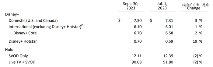 另外,迪士尼也在持续优化流媒体业务的变现率。在对Disney+和Hulu免广告套餐每月上浮3美元后,Disney+本土的单户每月平均收入提升近3%至7.50美元。