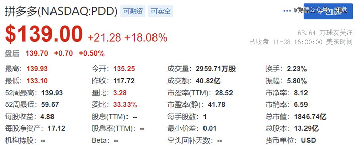 昨夜,拼多多发布了其第三季度的财务报告,使其股价飙升 18%,经过这一轮涨幅,拼多多的市值也来到了 1864.7 亿美元,市值距离阿里巴巴的 1954.4 亿美元仅差一步之遥。