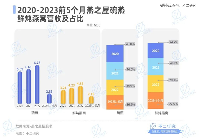 「不二研究」据其最新招股书发现:2023年前5个月,燕之屋营收7.83亿元,同比增加12.34%;同期,净利润为1.01亿元,同比增加20.24%。