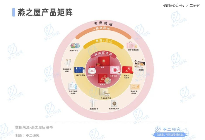 燕之屋是一家从事燕窝产品的研发、生产和销售的企业,旗下主要拥有三大产品类别—纯燕窝产品、“燕窝+”产品以及“+燕窝”产品。