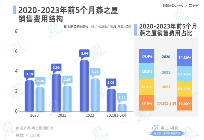 在「不二研究」看来,虽然燕之屋的营收平稳上升,或是依托于高额广告宣传费用,以营销增长换收入增长。