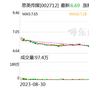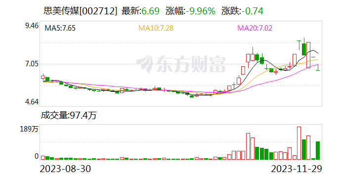 Wind数据显示,11月29日,思美传媒股价再度跌停,收报6.69元/股。