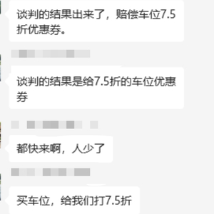 11月29日下午,记者了解到,业主代表与开发商进行了第一次协商,开发商的答复是,“原购房业主可赔偿7.5折车位优惠券,有效期为3个月”。不过部分业主对这一解决方案并不十分认可,认为“这等于在促销车位”。
