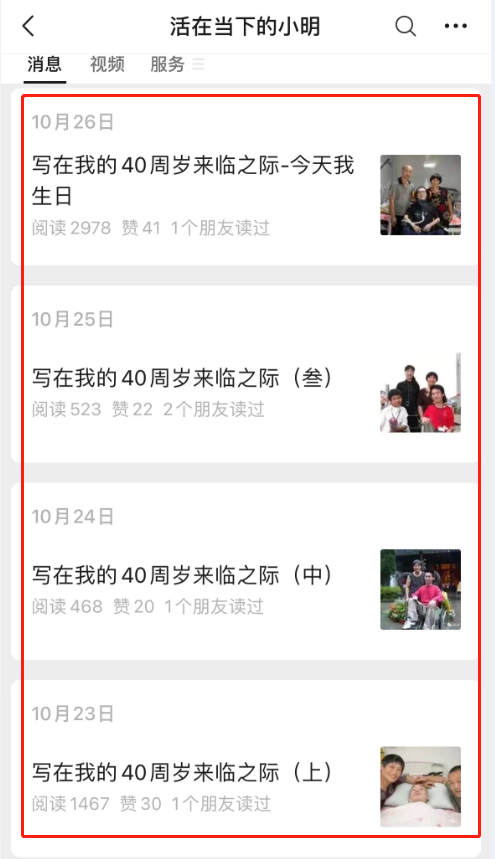 今年10月26日,正是李卓君的40岁生日。对于这个年龄节点,李卓君似乎寄托了很多人生希望。在其运营的个人公众号“活在当下的小明”里,从10月23日到10月26日,李卓君连续发布了4篇有关这场生日的文章——“写在我的40周岁来临之际”。