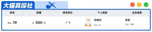 而在2023年的胡润榜上,创始人许仰天以500亿的身家,排在中国的第79位。当然,这个身家也只是估算,因为许仰天的具体持股信息,并没有公开。