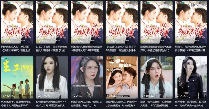 韩束之前投放的植入曝光的挂车剧:“这是韩束XX产品,功能有XX适合送给妈妈。”达人会着重于产品功效的讲解,爆量难度大;而品牌定制短剧是走“种草”逻辑的新内容形式:强拉新、高转化、高复投。比如韩束和抖音红人姜十七合作推出的《以成长来装束》,讲述了女主一路逆袭成为韩束品牌主管的故事。