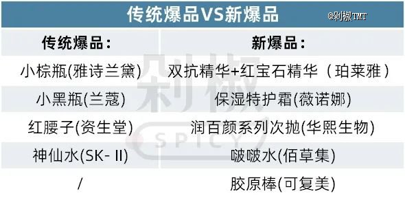 如今,这些经典爆品正在中国市场失去光环,取而代之是国产新爆品,如珀莱雅的“早A晚C”,薇诺娜的舒敏保湿特护霜,可复美的胶原棒,夸迪、润百颜的次抛等。