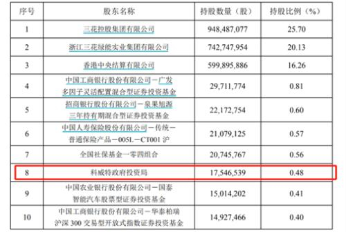 如三花智控近期公告显示,截至11月6日,该公司在四季度获得了科威特政府投资局的增持,现持股总量为1754.65万股。