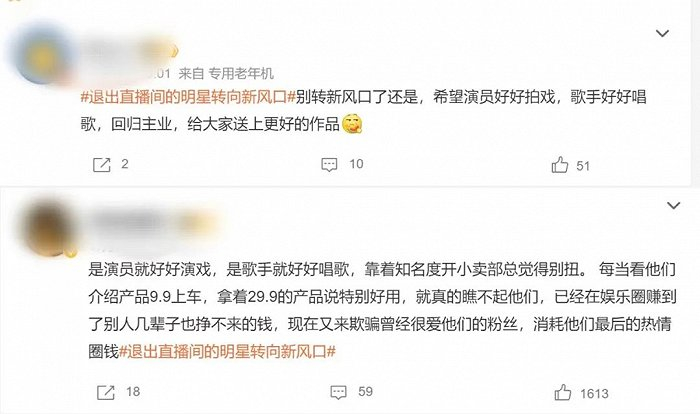 近日,退出直播间的明星转向新风口冲上微博热搜榜第一。网友纷纷在话题下表示,明星应该首先将主业做好,与其想心思找新风口,不如好好磨练演艺能力,为大众和市场带去更好的作品。