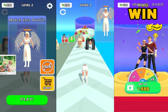 而今年上线的《Build A Queen》,题材有些奇葩(主角要在跑道上收集发型、服饰甚至是身体部位,组成合适的造型),但还是能看出这是一款跑酷手游。有趣的是,游戏里面还糅杂了一堆简单的功能模块,比如化妆、装修、建造、恋爱故事等等,玩家要通过闯关解锁。这些内容与核心玩法融合得并不是很好,但胜在题材够猎奇、内容够丰富。据SensorTower,游戏自8月下载量开始猛涨,四个月内累计突破3700万。