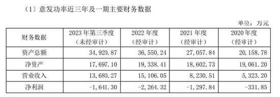 公告数据显示,意发功率2020-2023年三季度营收分别为5323万元、8230万元、1.51亿元和1.37亿元,净亏损分别为332万元、1298万元、2264万元和1641.3万元。