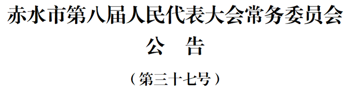 赤水市第八届人民代表大会常务委员会第十六次会议任命: