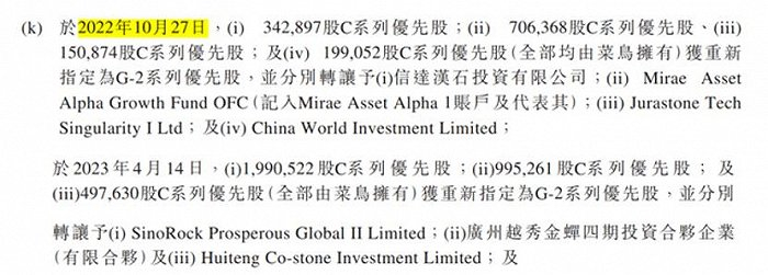 而据招股书显示,此前菜鸟曾两度转让部分股权。