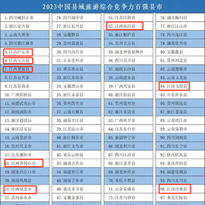 2023全国县域旅游高质量发展交流会近日召开,会上,国内著名县域旅游研究机构竞争力智库和北京中新城市规划设计研究院发布《中国县域旅游竞争力报告2023》,揭晓了2023中国县域旅游综合竞争力百强县市和2023中国市辖区旅游综合竞争力百强区,江西13个县市区上榜!快来看有你家乡吗?