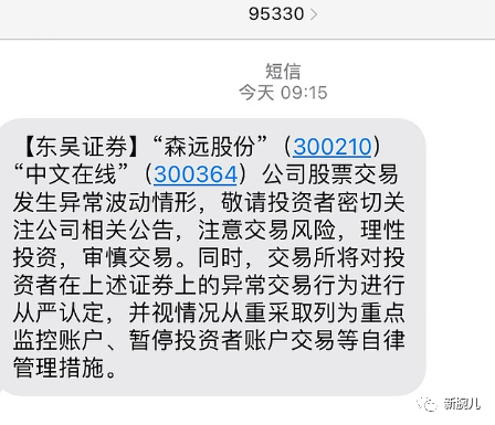 就比如中文在线证券公司一大早给投资者发股票交易存在异常波动,提醒审慎交易: