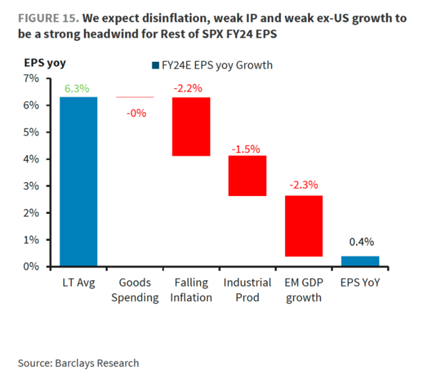 巴克莱指出,虽然他们对于2024年的宏观前景的预期与前几个月相比也更为乐观,但经济活动仍很可能放缓,这一点也使得市场对于每股收益重新加速增长的预期显得不切实际: