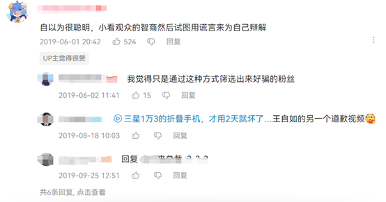 (B站视频《王自如三星galaxy fold回应完整版》相关评论)