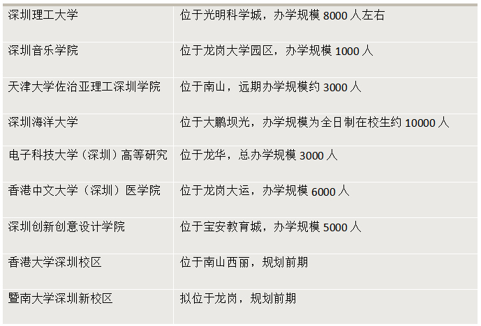 为此,近年来,深圳拼命建大学,几乎以每年1所新大学的速度,扭转“高校荒漠”的尴尬局面。