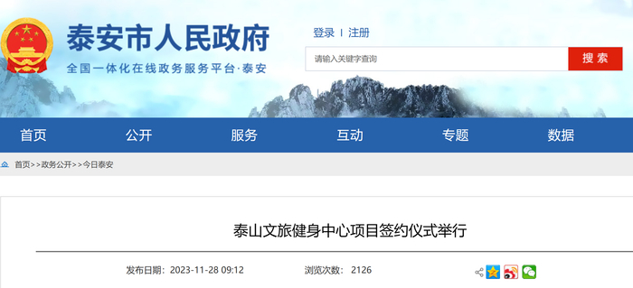 不过,中新经纬查询泰安市政府网站发现,在今年5月底,泰安市委副书记、市长李兰祥一行曾到访万达集团总部,与万达集团有关负责同志座谈交流体育场馆合作等有关事宜。该新闻稿件所称的“体育场馆”是否是泰山文旅健身中心不得而知,目前也没查询到双方的合作进展。万达集团在泰安布局有泰山万达广场、富力万达嘉华酒店项目。