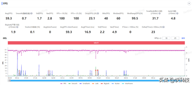 中负载的和平精英手游,高清画质+极限帧率下,一局激烈的对战,平均帧率稳定在59.3FPS,游戏过程中稳定流畅,期间略有微小的波动,但并不影响游戏的流畅度,平均波动仅有0.7。