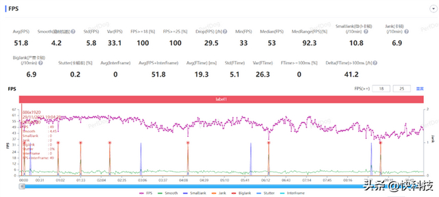 接着我们用原神最高画质+60帧模式进行了跑图测试,接近10分钟的测试,游戏期间出现了不同程度的降频升频,最终平均帧率稳定在51.8FPS。