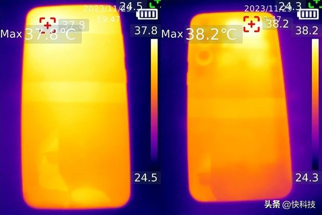 温度方面,机身正面最高37.8摄氏度,背面最高38.2摄氏度。