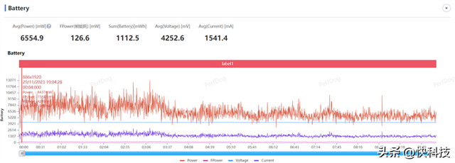我们查看了功耗,高达6.55W,帧能耗126.6mW,看来三星Galaxy S23 FE为了高清的流畅画面,已经在全力输出了。