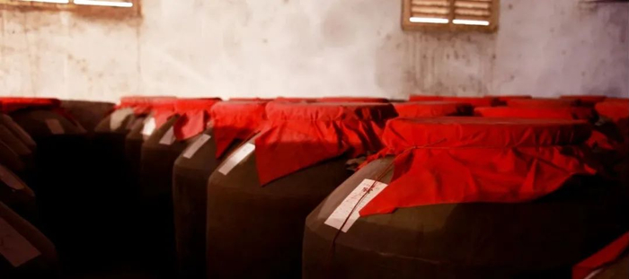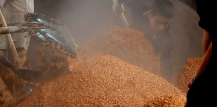 投料后开始蒸煮,因为红缨子高粱有皮厚、支链淀粉含量高的特点,每隔一个月蒸煮一次,在一个生产周期内要反复蒸煮9次。