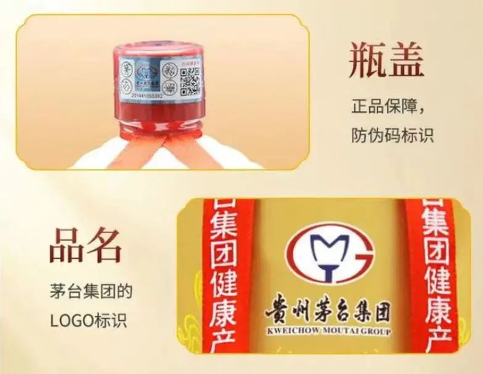 瓶身上有防伪码标识,扫码可追溯源头,还有茅台集团的LOGO标识,产品经过检验,品质层层把控,值得信赖,尽管放心入手!